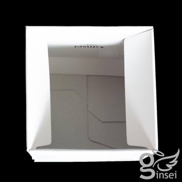 白い箱の上ブタと内ブタを箱の中に折り曲げてください。
