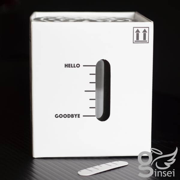 白い箱の側面には、箱の中のゲルの残量が確認できる窓があります。お好みによりキリトリ線から切り取ってご使用ください。